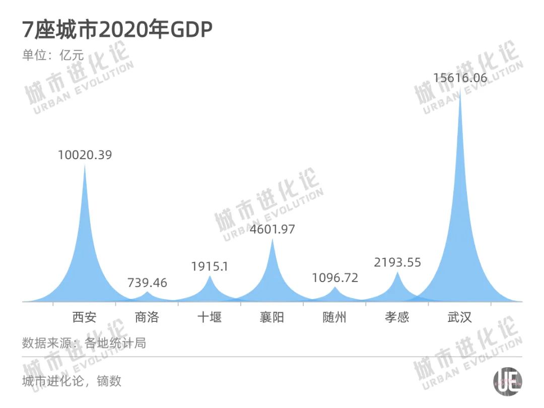 总体而言,目前除武汉、西安和襄阳外,处于中间地带的城市经济体量都较小,其中排名垫底的商洛2020年GDP尚未突破千亿。