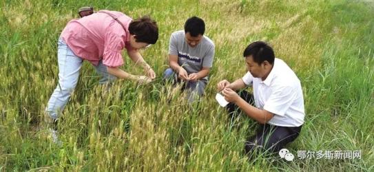 ▲ 乌审旗嘎鲁图镇斯布扣嘎查驻村第一书记特门格西实地查看嘎查产业种植基地。