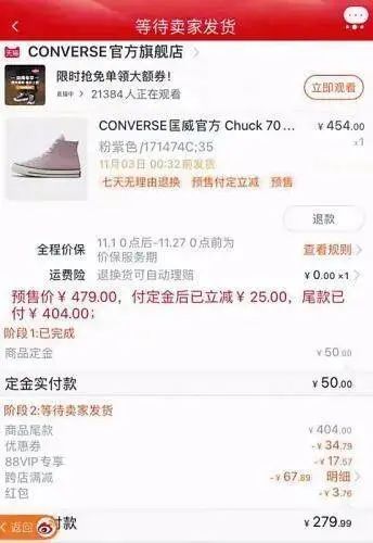 预售付完尾款后,商品变相降价