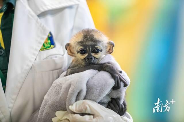 国内首例人工育幼黑腿白臀叶猴在穗亮相