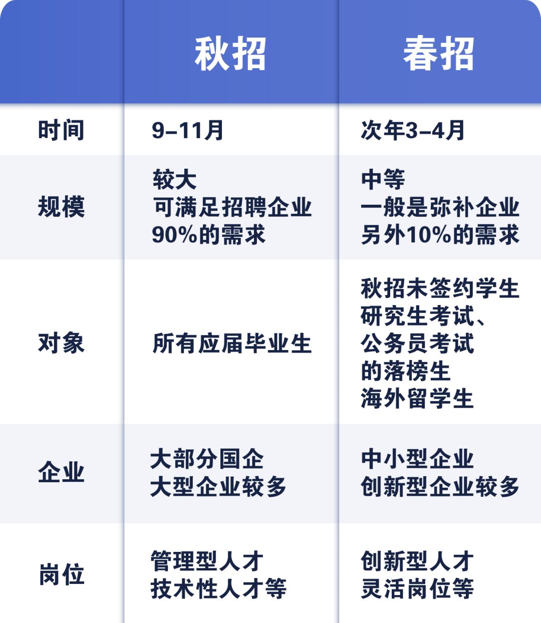 看到这里,可能很多同学会觉得困惑:同样是针对应届毕业生的校园招聘,秋招和春招究竟有什么区别?不同情况的同学又该如何选择呢?