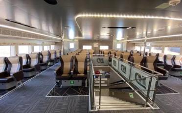 船平稳行驶在碧波上,客舱里几乎听不到发动机噪声。座椅设计符合人体工程学,乘坐非常舒适,并且每张座椅上都有USB充电接口。