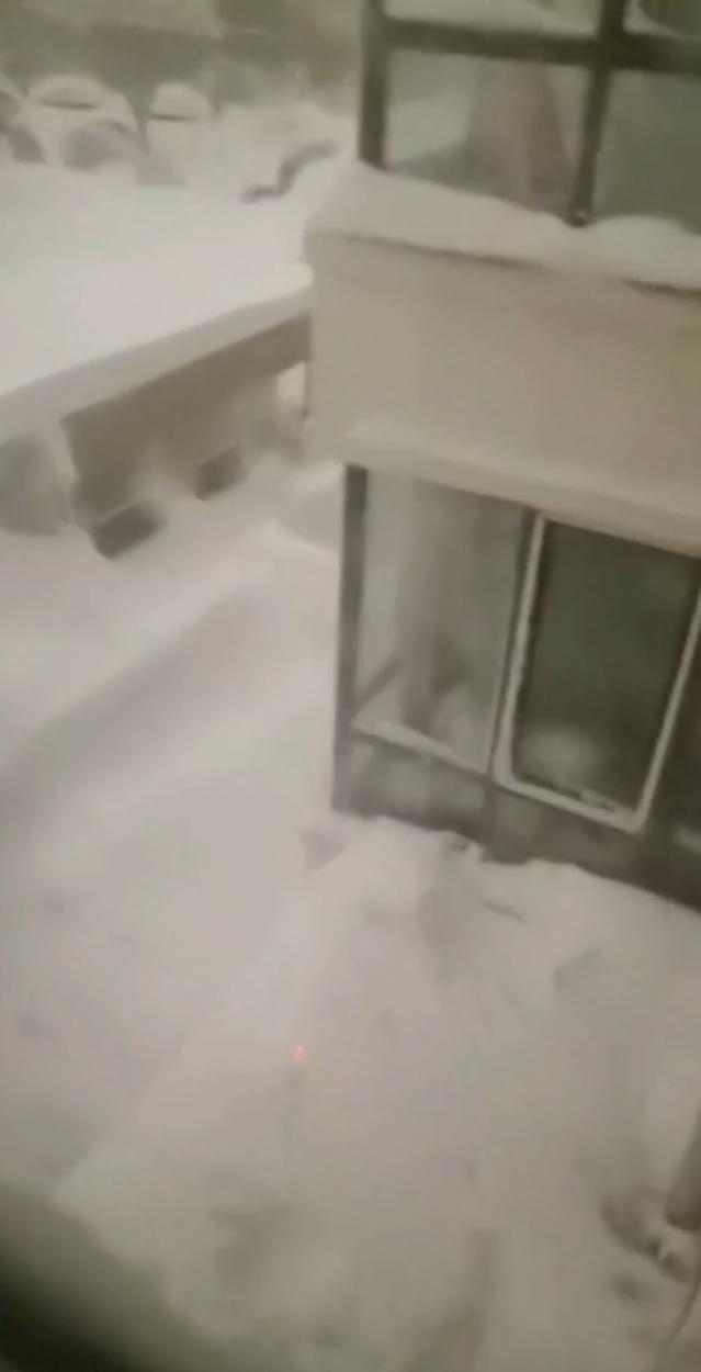 拍摄视频的柏女士惊叹道:“啊!对面这个是二楼,我们家是三楼,一楼哪去了?一楼都埋没了,这雪太大了。”