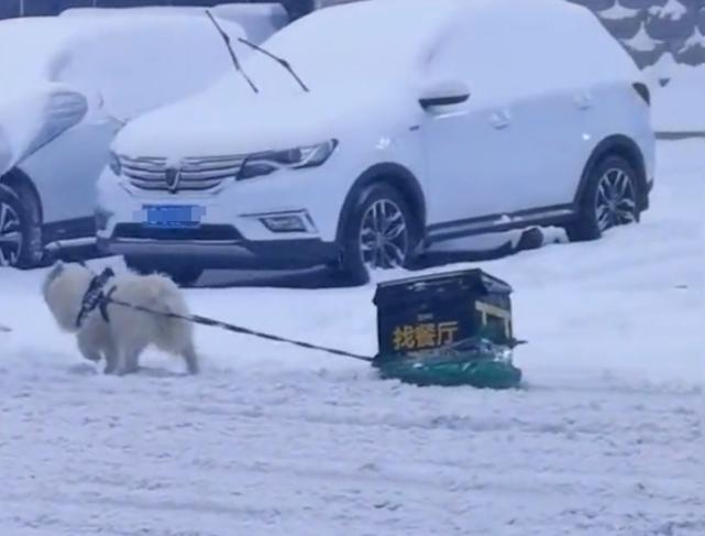 让狗狗拉雪橇和外卖箱