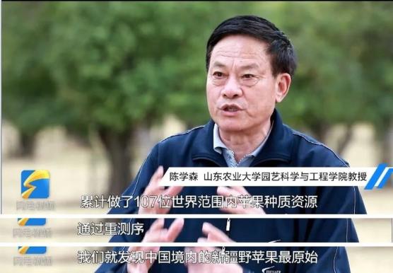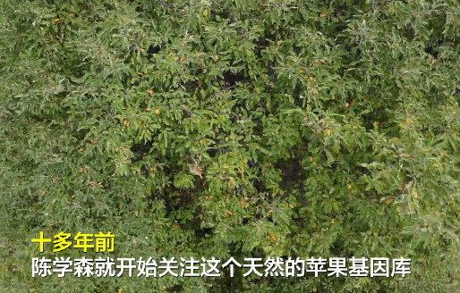 位于新疆伊犁的野生苹果林,面积约14万亩,野生苹果多达84种。十多年前,陈学森就开始关注这个天然的苹果基因库,并带领团队多次来到这里,采集野苹果,进行基因测序。2017年,陈学森将多年积累的学术成果发表在世界顶级刊物《自然·通讯》杂志上。这篇在学术界引发轰动的论文,证明了新疆野苹果是世界栽培苹果的起源。