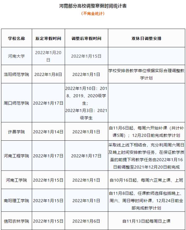 3)最早提前17天!河南多所高校寒假放假时间调整。