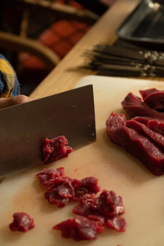 对于牛怎么吃,鹤岗人是认真的。据当地老板安乐天介绍,在鹤岗,肉串必须是新鲜的,最大限度留住肉汁,也保障食品安全;若谁家用了冻肉,一口下去口感不对,会直接被食客拉黑,从此江湖不再见。