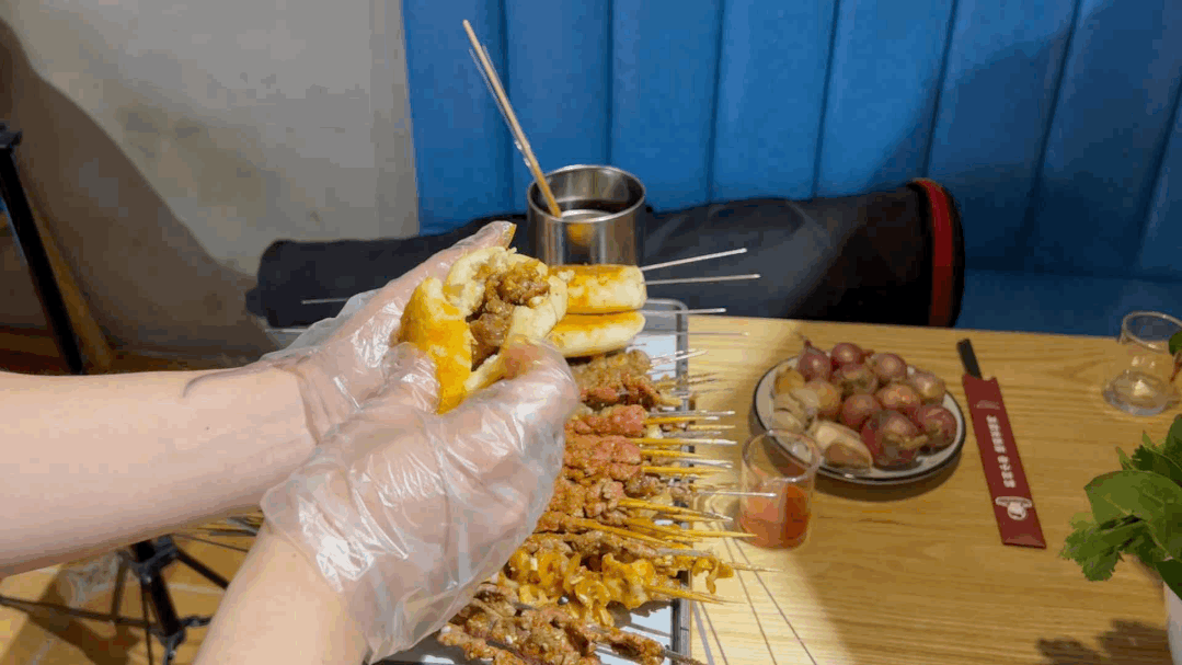 它以牛肉串为主,可以根据个人口味选择几分熟——对,和西餐的牛排一样,三五七分到全熟,随你挑。“三分熟”是牛肉串的经典吃法,牛肉在炭火中迅捷而过,被烟火气拥抱却不浸染,口感依旧鲜嫩无比;搭配特制的小料,感受细嫩肉质在舌尖跳动,想想就流口水。