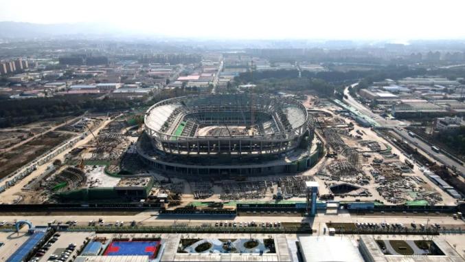 该项目占地面积约16万平方米,总建筑面积为194105平方米,其中地上115418㎡,地下78687㎡,包含1座5万座专业足球场,2块训练场地,1座多功能馆,1座游泳训练馆及商业、地下停车位等配套设施。根据最新消息,亚洲杯足球场项目建设周期为833天,预计2022年11月10日全面竣工交付,成为山东省首座五万座专业足球场。