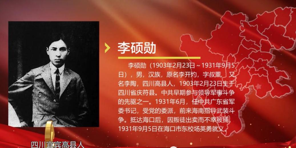 全国“双百”人物,宜宾出了3位:秋收起义总指挥卢德铭,赤胆忠心浩气扬的李硕勋,红枪白马女先锋的赵一曼。英烈精神薪火相传,革命事业永续发展。