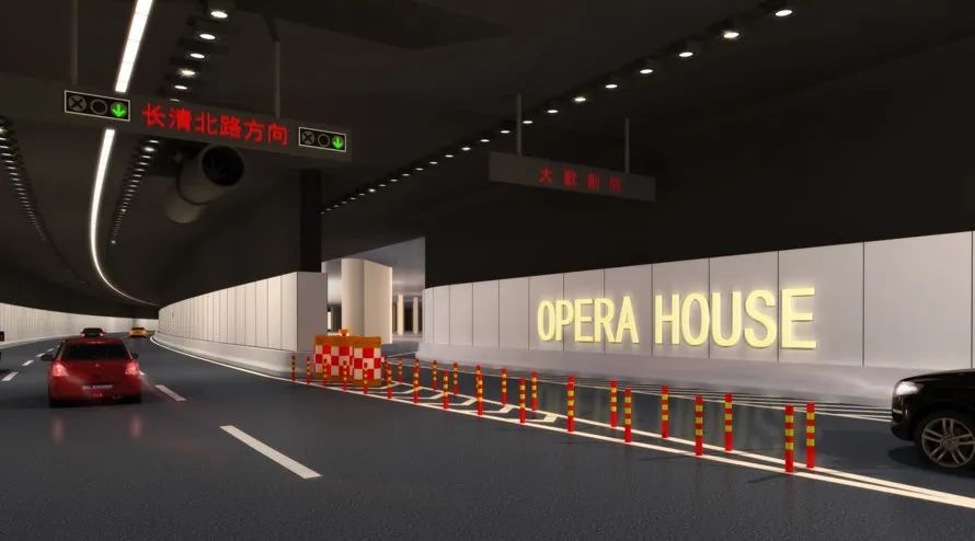 未来地下通道将成为新建的上海大歌剧院紧邻的唯一主干路,设计团队创新性地在世博大道地下道路设置了联络道,直通大歌剧院地下车库。