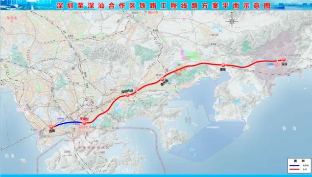 预计2025年建成投入运营。(设计行车速度为350公里/小时,通车后,深汕合作区至深圳的时间将会缩短至30分钟以内。)