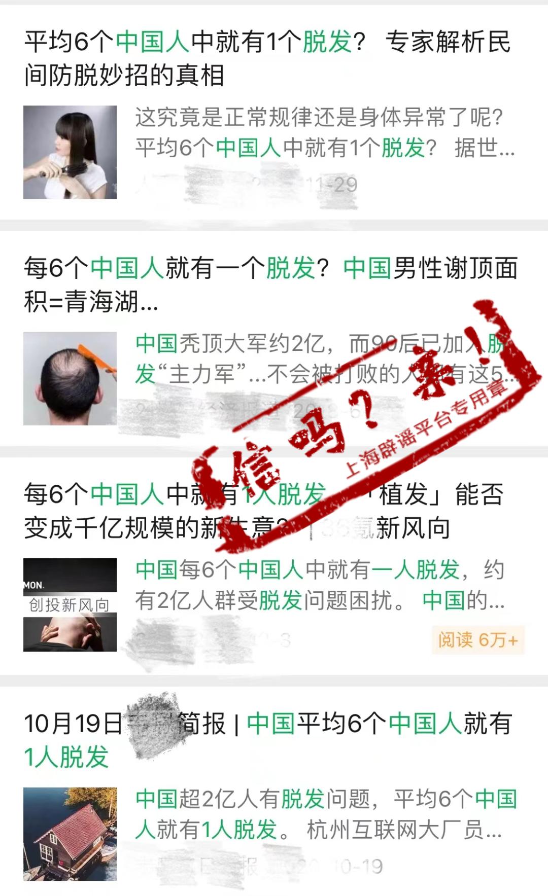 真相:在很多有关“头等大事”的信息中,都援引世界卫生组织(或其他权威机构)的统计数据称,中国有超过2亿人存在脱发烦恼。
