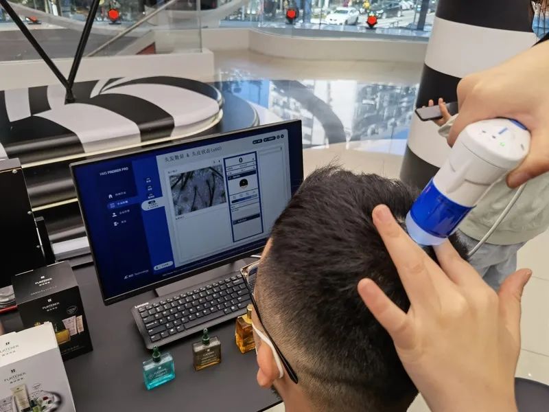 目前,有不少零售商已经引入了头皮检测服务。手持检测仪能对头皮进行不同深度的拍摄,判断头皮的清洁度、敏感度,以及毛囊和头发的健康程度等。