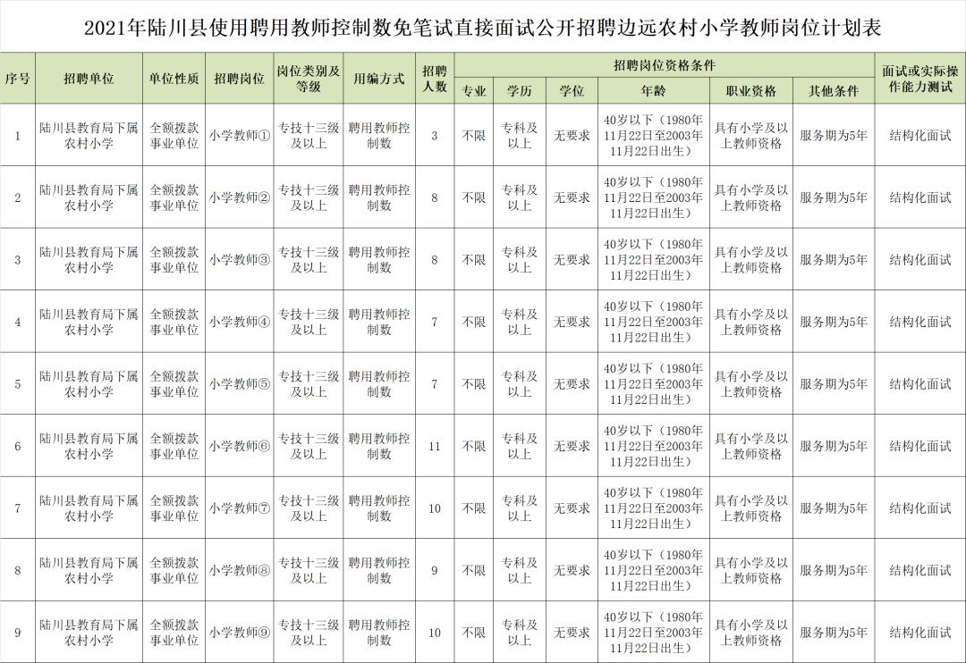 6.具备《2021年陆川县使用聘用教师控制数免笔试直接面试公开招聘边远农村小学教师岗位计划表》要求所需的岗位资格条件。