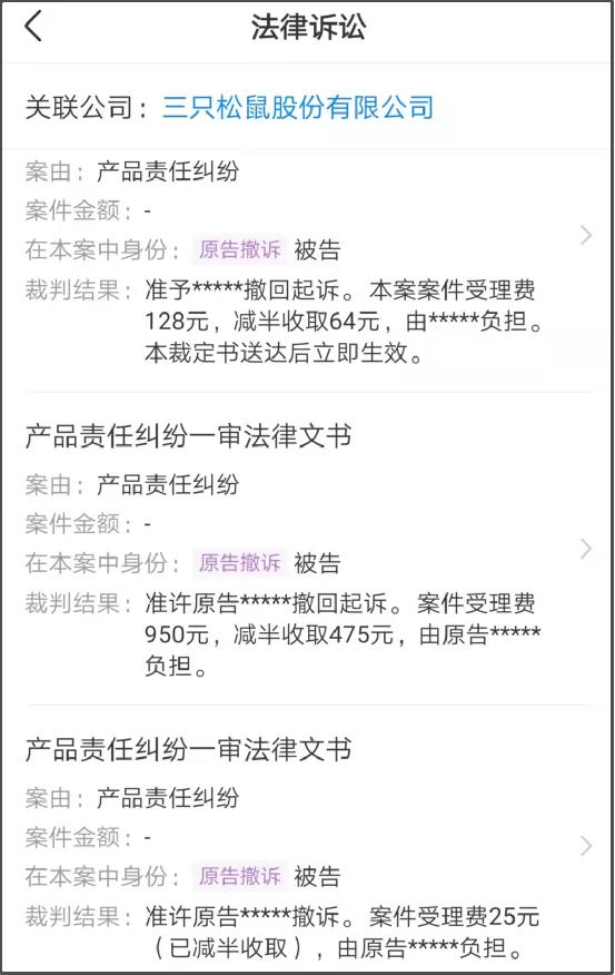因为产品责任纠纷问题,三只松鼠屡屡与消费者发生诉讼,天眼查数据显示,三只松鼠的各类司法和行政风险达到四百多条。