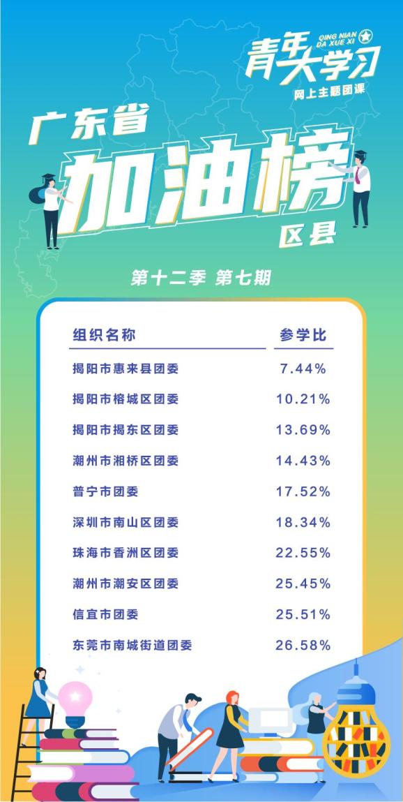 从各地市参学情况看,肇庆、梅州、河源、中山、阳江、清远、东莞、佛山等8个地市参学比超过70%,其中肇庆参学比超过86%,连续两周排名全省第一。惠州、韶关、阳江、佛山的参学比单周涨幅较大。