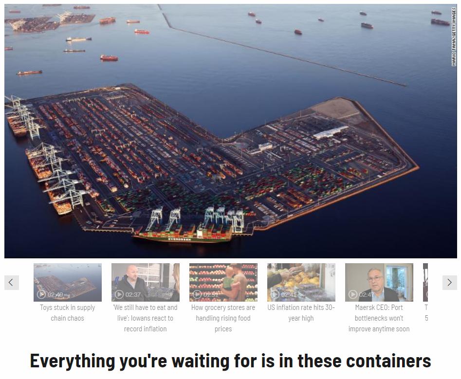 看新闻报道,供应链紧张的具体表现之一是:一边是工厂等待原材料和零部件生产、空空如也的超市等待消费品进来,另一边是承载价值240亿美元商品的装箱船却滞留在美国最大的两个港口洛杉矶和长滩港,等待卸货。
