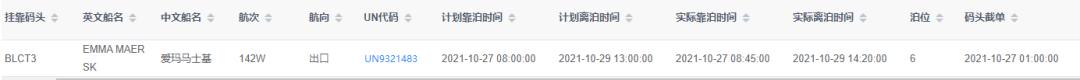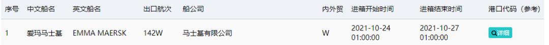 比如,从宁波港数据平台查到的爱玛马士基(EMMA MAERSK)这条船的信息如下:进箱开始时间和进箱结束时间,就是车队可以从码头提箱到工厂装箱并送进港口的起止时间。