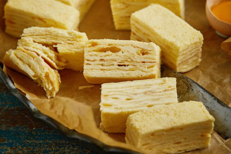 这种白色的长方形千层蛋糕和拿破仑蛋糕类似,于是常常被大家称为“新疆拿破仑”。娜帕里勇的中间有多层馅料和酥皮,吃起来有酸奶或奶酪的味道,一口咬下去,层层叠叠奶味绵密,减肥是什么!吃到娜帕里勇瞬间抛在脑后。