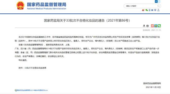 据国家药品监督管理局消息,国家药监局发布关于33批次不合格化妆品的通告(2021年第86号)。其中,标示为科玛化妆品(北京)有限公司,销售企业:纽西之谜(上海)国际贸易有限公司生产的纽西之谜日常呵护防晒霜、纽西之谜日常呵护防晒霜SPF32 PA++不合格。