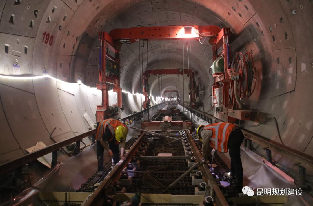 5号线呈南北走向、穿越昆明主城区,这对材料进场、安全文明施工、材料转运等环节影响较大,面对困难,地铁5号线主要依托铺轨基地进行轨排组装,组装好的轨排采用基地门吊吊装下洞,再采用轨道车推送至作业面的方法进行施工,轨道控制使用先进的CPⅢ精调技术。