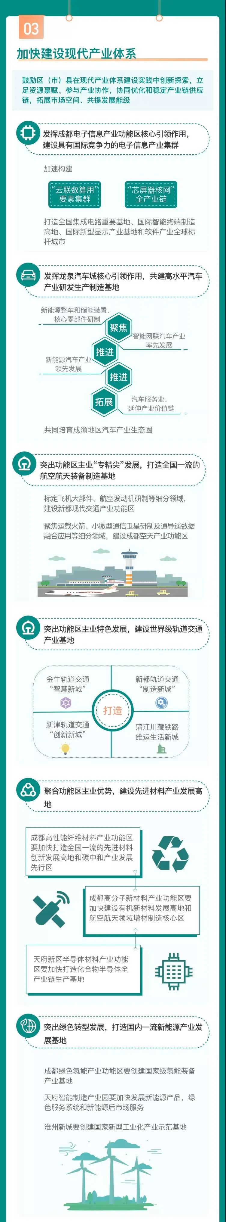 新都区、简阳市及相关产业功能区:突出功能区主业“专精尖”发展,打造全国一流的航空航天装备制造基地。