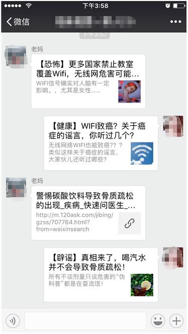 最近网传着一句话“不孝有三,在长辈群里辟谣为大”,调侃的背后是每天被迫接受“链接轰炸”的无奈。在家长群里辟谣等于质疑长辈的“权威”,等于不想“好好生活”了......家族群里铺天盖地的谣言链接和各种“提醒式”转发文案,数量之多、领域之广,让学生党们不忍直视。面对被链接支配的恐惧,学生党们可以像上图一样勇敢地反驳,也可以默默地mark(标记)正确的科普给自己洗脑......总之,远离谣言,相信科学,珍爱生命。