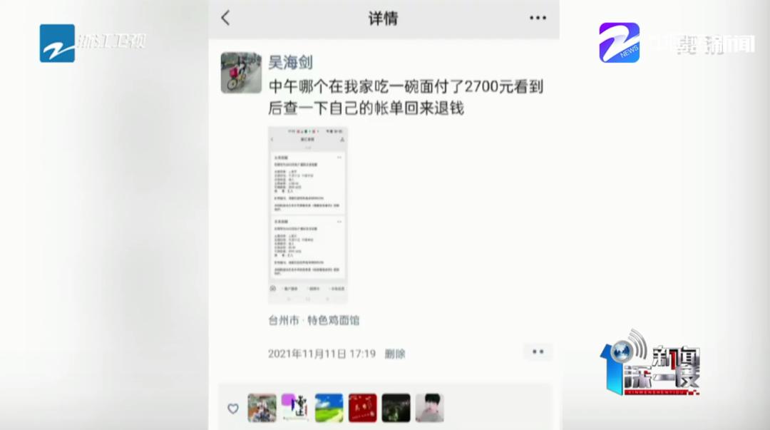 “有个顾客在我家吃了一碗面,付了2700元。”11月11日下午,温岭市城南镇大闾街村的特色鸡面馆老板吴海剑的店里收到一笔“大单子”。