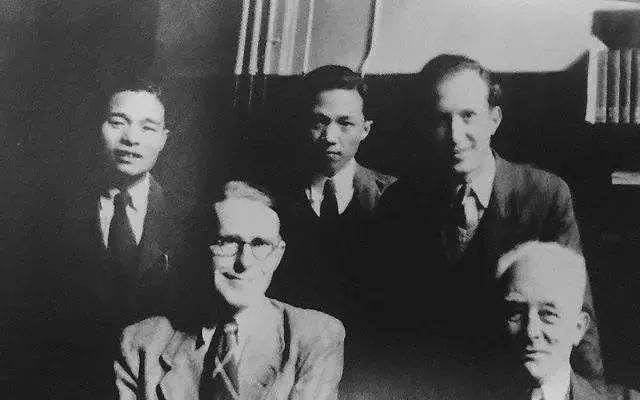 程开甲(后排左1)与导师玻恩教授(前排右1)在一起