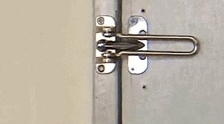 普通档次的酒店里,可能会有反锁锁链,把锁链锁上,然后按照图片显示再放上衣架,一边卡住锁链,一边卡住把手,谁要想进来还真不容易。