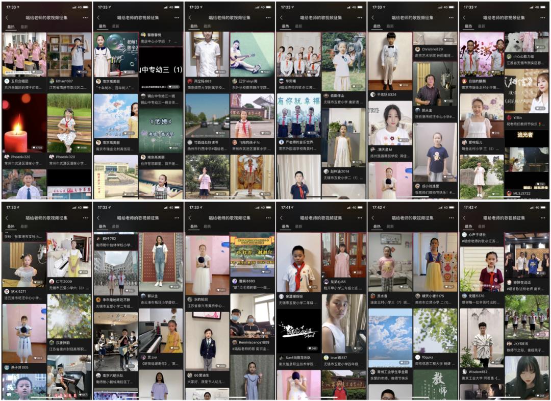 逾200多所大中小学、幼儿园积极组织学生参与,苏州大学、南京艺术学院、常州大学等学子发挥特长,用音乐唱出美好祝愿;南京外国语学校、南通市实验中学等学生通过镜头,将心底的话唱与老师;无锡市五爱小学、常州市武进区潘家小学等学生一展歌喉,将真诚祝福注入歌声。
