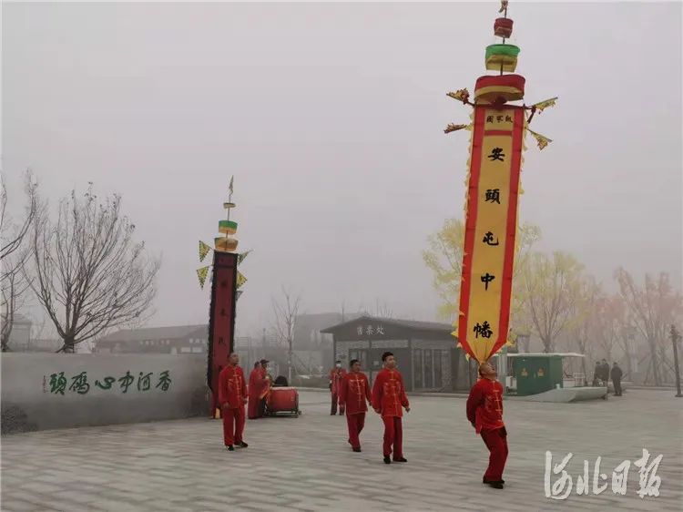 除了安头屯中幡外,地处北运河中段的香河在大运河的孕育下,还涌现了五行通臂拳、西路评剧、京东大鼓、竹马会、肉饼、景泰蓝、玉雕、刺绣、金门闸遗址等一大批具有香河特色的文化遗产,这些也成为中国大运河文化不可或缺的一部分。