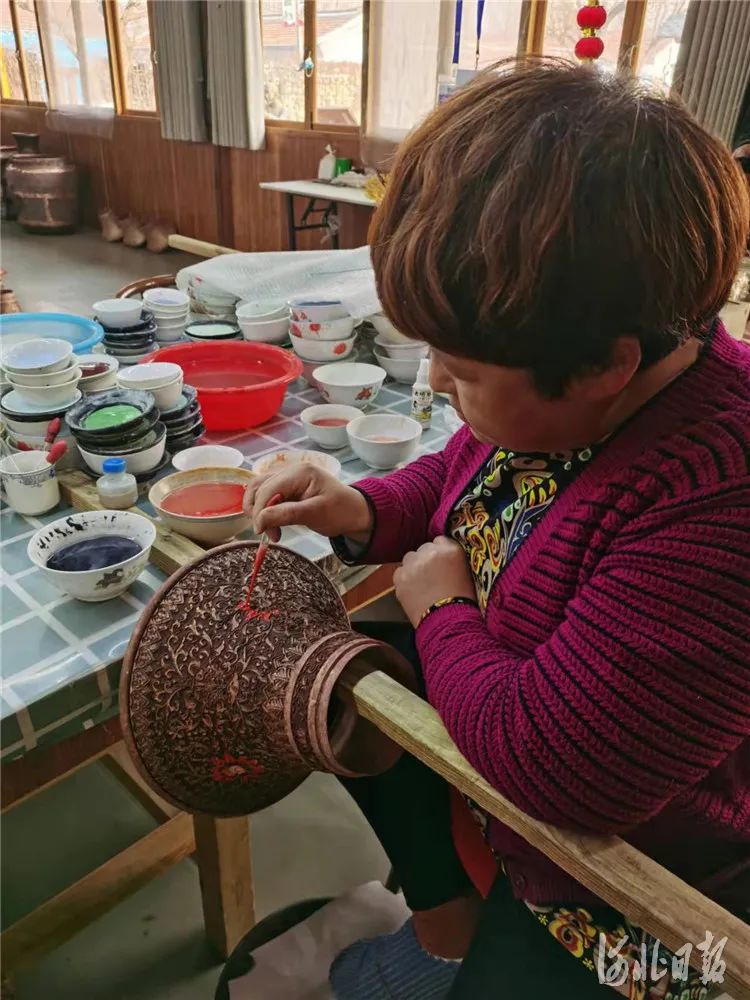 图为中青旅水岸潮白景区的景泰蓝工坊的工作人员进行点蓝。周禹佳 摄