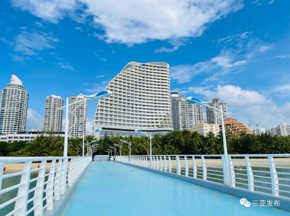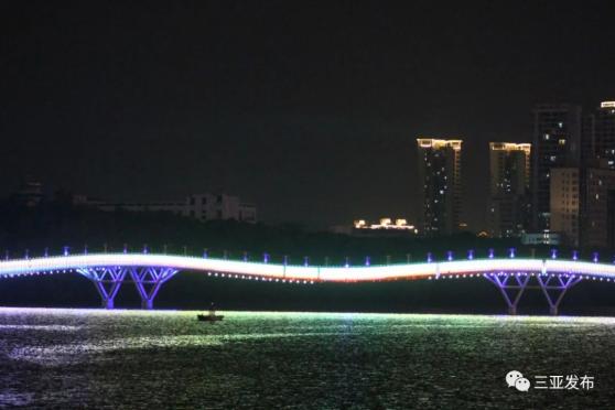 桥的两边都是美丽的风景,向海滩走去就是美丽的三亚湾度假区海岸,夜晚在桥上望着这条有着20多公里的滨海大道,把大海的美景和市区的繁华完美的融合在一起,桥的另一边是三亚具有地标性建筑的凤凰岛,在桥上吹着海风,欣赏凤凰岛“海上天幕——梦幻灯光秀”独一无二的视觉盛宴。