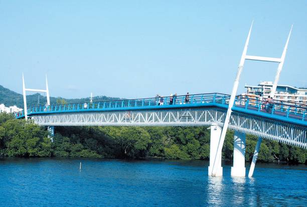 三亚临春河步行桥位于白鹭公园和商品街一巷路口之间的一座木制景观桥,全长170米,桥的设计并不突出,中平两斜的拱形结构,色调以天蓝为主。临春河两旁植被枝繁叶茂,偶尔隐藏几只白鹭从丛林飞出让人十分惊喜,站在桥中央吹着和煦的风,整个身心平心定气。