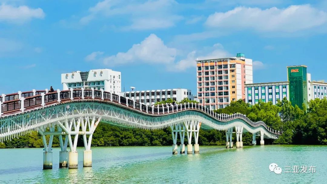 三亚大桥是老三亚人的记忆,2018年的6月份,新三亚大桥实现功能性通车,全长246.86米,宽34.5米,桥墩采用莲花花瓣加以装饰,共6排桥墩每排有2个莲花花瓣,其中3排、4排桥墩为通航通道,可满足5米高、50米宽的轮船通过大桥。桥面也从原来的双向四车道增加到双向六车道,并增加两条非机动车道与人行道,且桥上设置了飘带式观景平台、夜景照明,市民游客可在桥上观光游览,休憩放松。