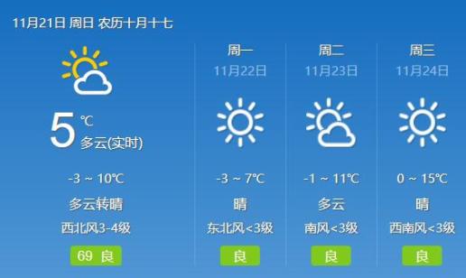 预计西安未来几天温度跳崖式下跌,21日多云转晴,偏北风3-4级,阵风5-6级,4℃~11℃;22日白天:晴间多云,-3℃~7℃;23日晴间多云,-3℃~11℃。