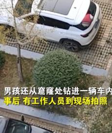 ▲11月19日,网曝江西景德镇一男孩大白天在小区里砸坏好几辆车。视频显示,小男孩搬起砖头将多辆车的玻璃砸出大窟窿,还从窟窿处钻进一辆车内。事后,有工作人员到现场拍照。20日,吕西派出所民警表示,已经把小孩子带到派出所进行教育,有关情况正在进一步调查处理中。