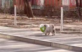 ▲11月19日,内蒙古呼和浩特。一段高校内一只狗狗叼走学生外卖,被保安拦下的视频走红。学生表示,保安要回了外卖,狗狗也很配合没有护食,后来有人发帖提醒失主找回。之前有一些好心的学生,会喂学校的小狗,没见过会叼走外卖的,这还是第一次见。
