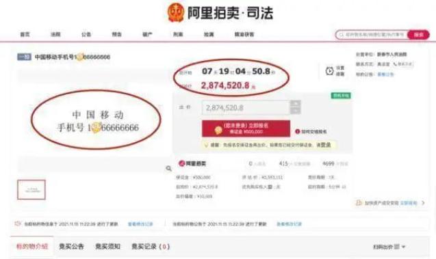 这个手机靓号,起拍价287万元