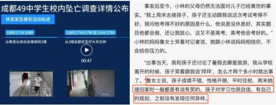 “孩子成绩不错,性格开朗,周末接回家也是有说有笑的。孩子对成绩也很自信,有自己的规划,之前没有发现任何异样。”