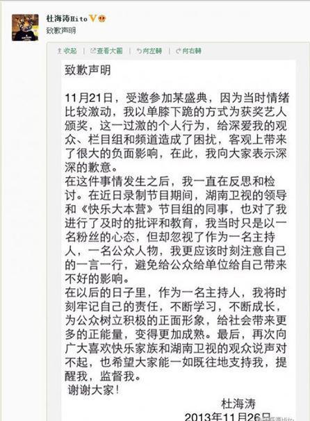 面对无数网友的讨伐,杜海涛这才发了道歉声明: