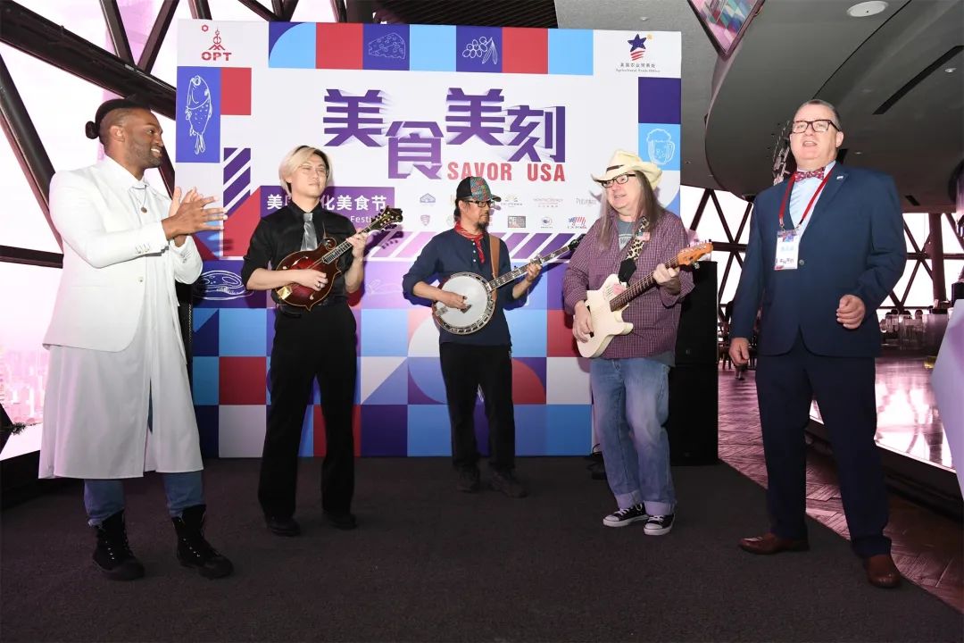 美食生活节开幕式上,美国乡村流行乐队为观众带来美国乡村音乐秀表演,上海小荧星艺术团的小演员们也登台演唱了歌曲《萱草花》和《You Raise Me Up》,用两国不同的音乐架起了中美文化交流的桥梁。