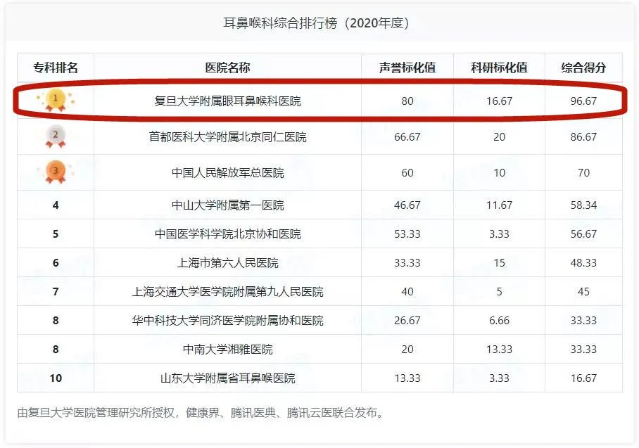 我院耳鼻喉科连续12年稳居专科声誉排行榜榜首,眼科连续12年稳居前三甲。作为国家卫健委唯一的三级甲等眼耳鼻喉科专科医院,以一流医术和高水平服务跻身综合排行榜50强。