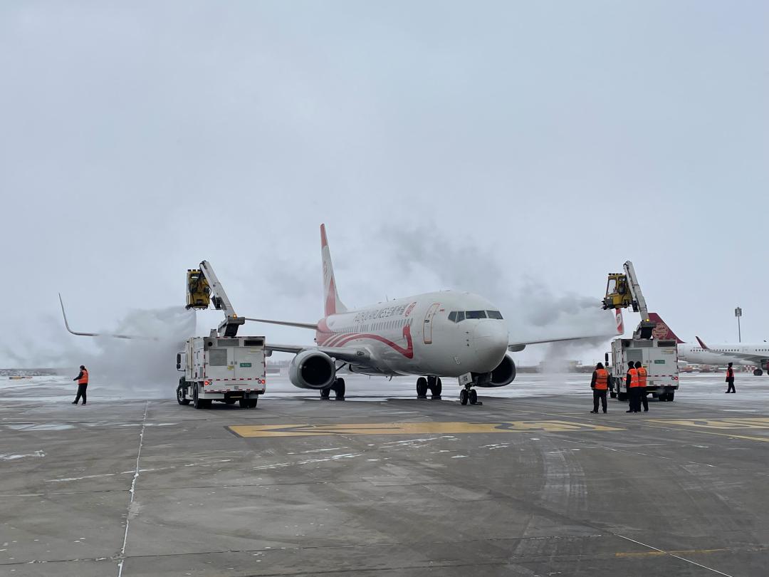 哈尔滨机场机务部门提前对飞机表面进行了清扫,并实施飞机的除冰作业,以确保飞行安全。在哈尔滨机场各部门的通力合作下,哈尔滨经太原飞往三亚的3U8545航班于10:18顺利起飞,航班陆续进出港。