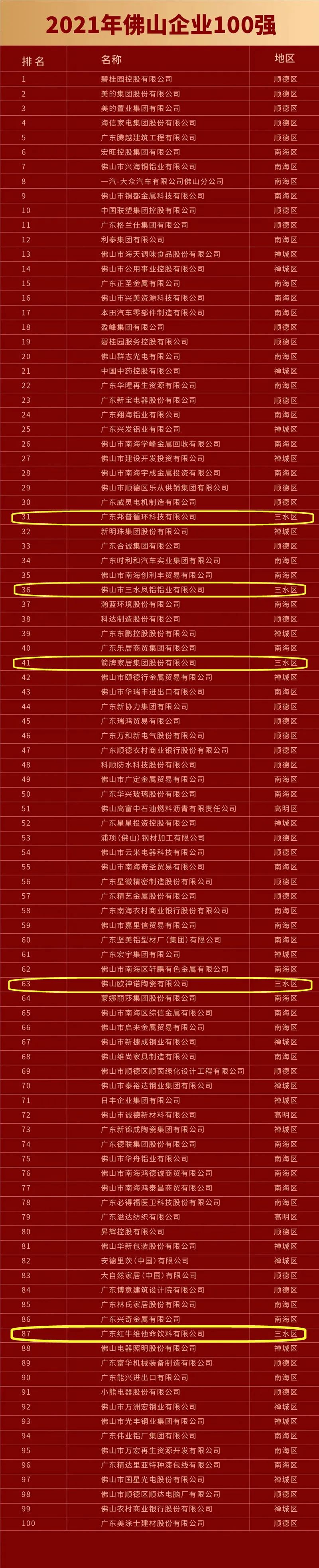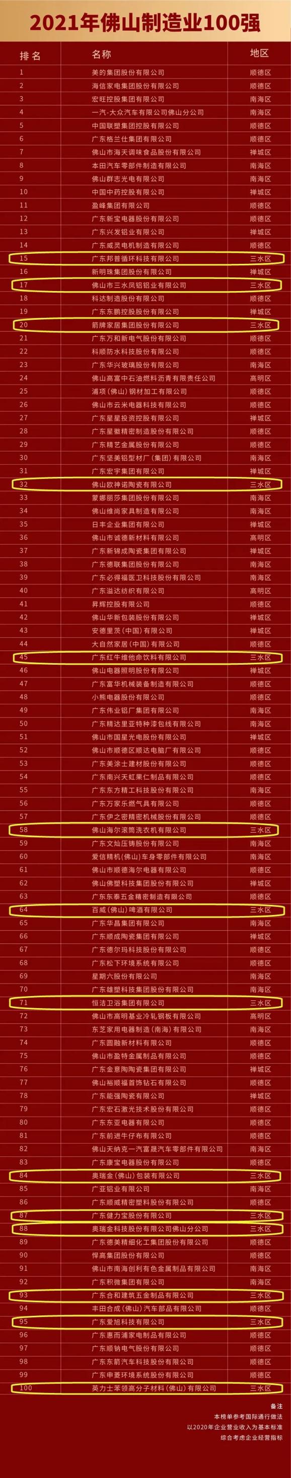 据悉,今年是第三次对佛山企业100强榜单进行发布,同时还首创性地推出“2021佛山企业制造业100强”榜单,以此展示佛山作为制造业大市的实力。