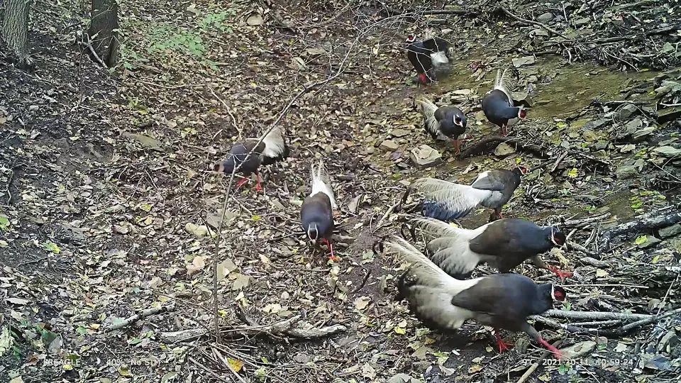 近日,山西管头山省级自然保护区管理局工作人员在系统处理识别红外相机连续监测成果时,发现1台红外相机拍摄到世界珍禽褐马鸡10只同框觅食的影像。