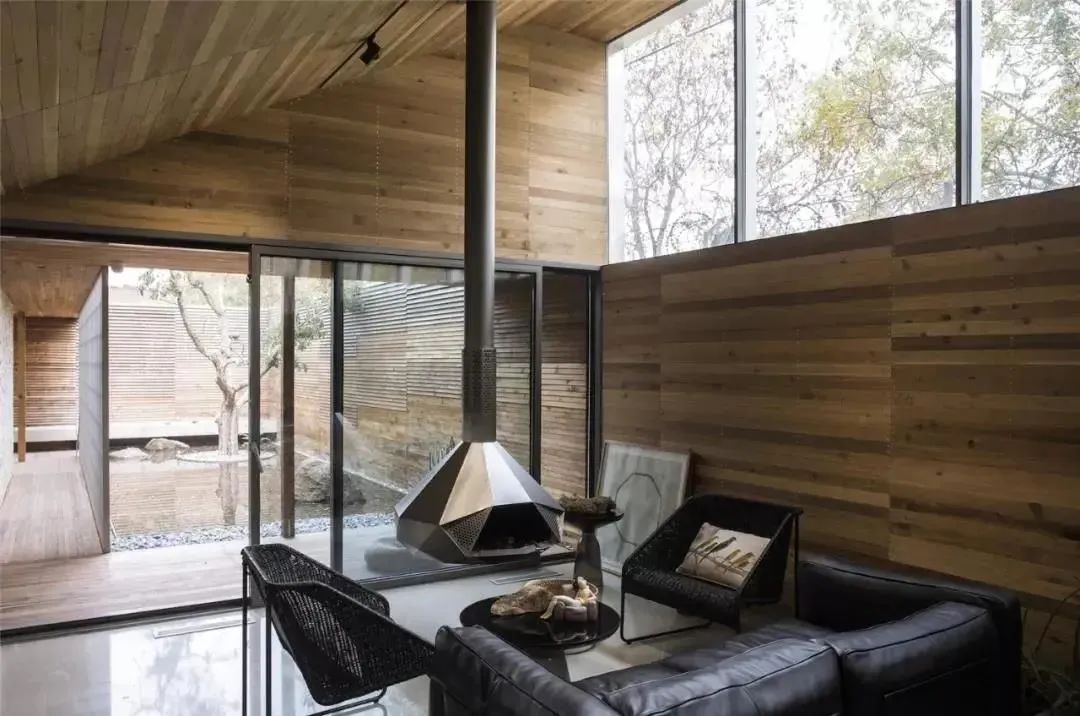 比如天井院,时下流行,确实也很美。但在北方这样天寒地冻的地方,保暖性不佳,摆放的暖炉更适合摆拍而不是使用。四周的大窗户看着都冷,也没起到加强采光的作用。