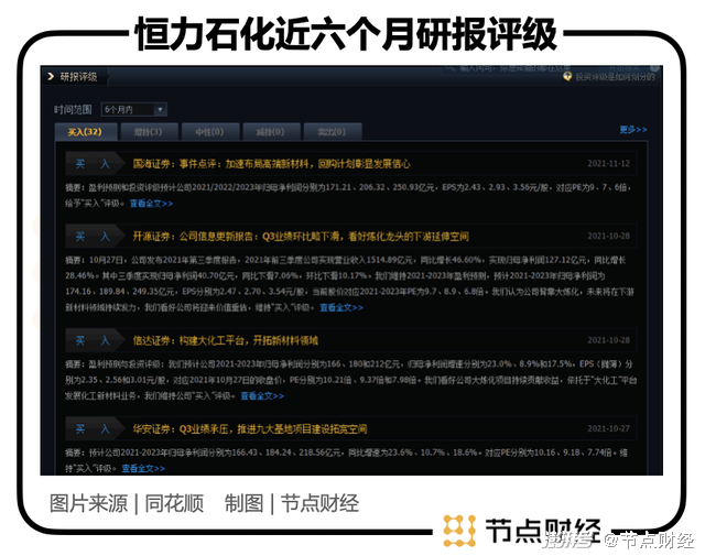 当然,资本市场对恒力石化并非一味看衰,统计发现,半年内投资机构共给出32份“买入”评级报告,3份“增持”报告。